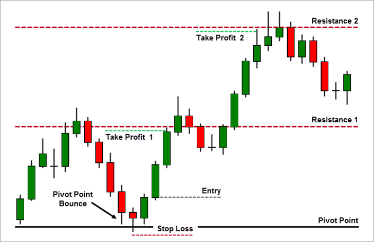 In technical analysis pivot points are called leading indicators. This means they are using to project the potential support and resistance for the current day. This is different from an indicator like a moving average which is a lagging indicator meaning it tells you what has already happened.